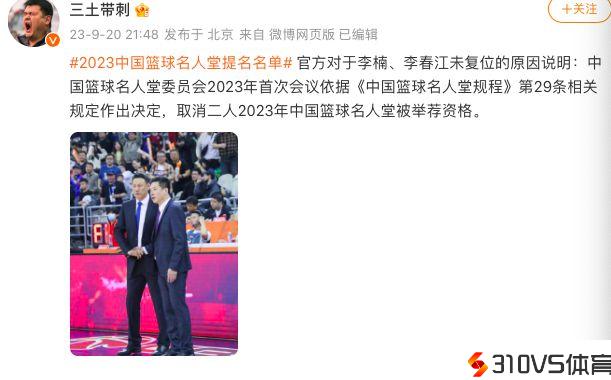 中国篮球两传奇重创:篮协官宣除名李楠李春江 恐彻底无缘名人堂