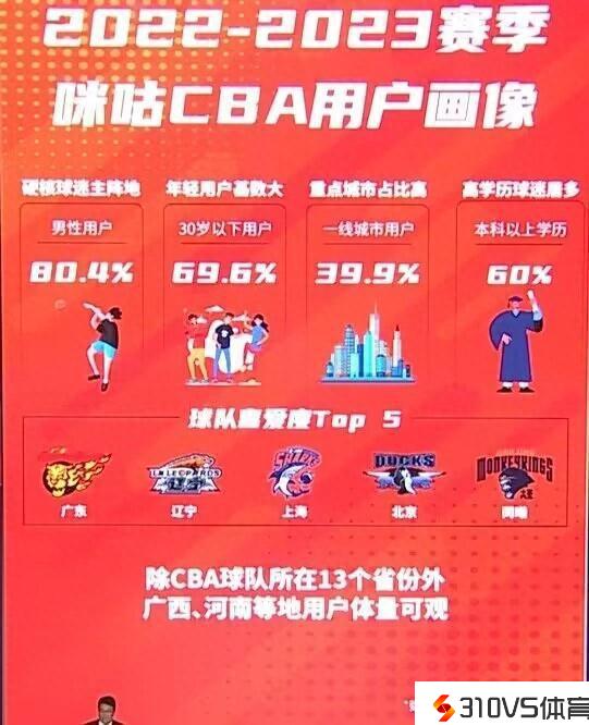 转播方晒球迷喜欢度TOP5球队:广东、辽宁、上海、北京、同曦