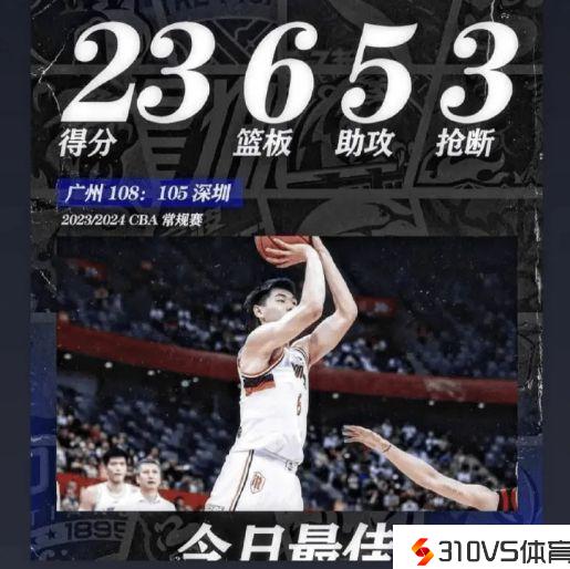 广州超新星崔永熙23分创赛季新高,外加5次助攻,率领广州108-105险胜深圳拿下同省德比大战。山西外线葛昭宝21+12,率领山西114-104击败天津。孙铭徽24分8助攻,协助广厦97-78大胜山东。