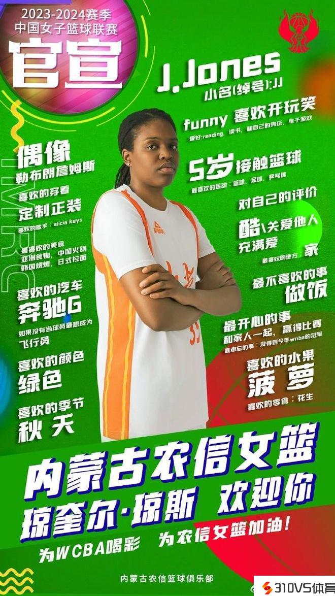 2冠内蒙古女篮官宣:韩旭自在人队友琼斯加盟 往年获WNBA亚军