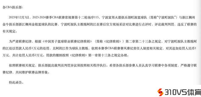 对此,CBA官方给出的认定,阿的江在赛后官方现场采访对竞赛停止点评时,评论裁判判罚,违犯了联赛的有关规则。