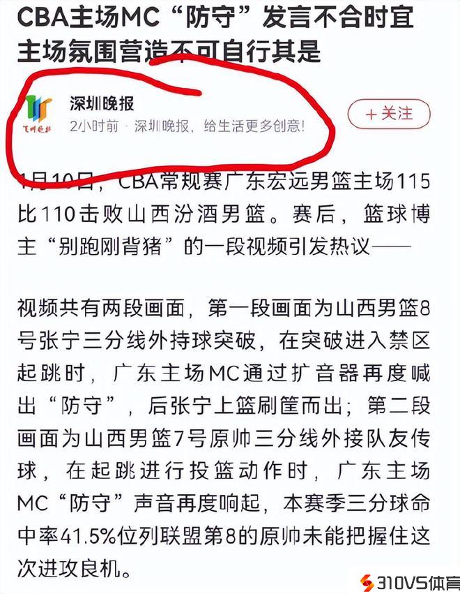 争议!深圳晚报点名批广东MC,屡次搅扰山西进攻,球迷怒批:开除