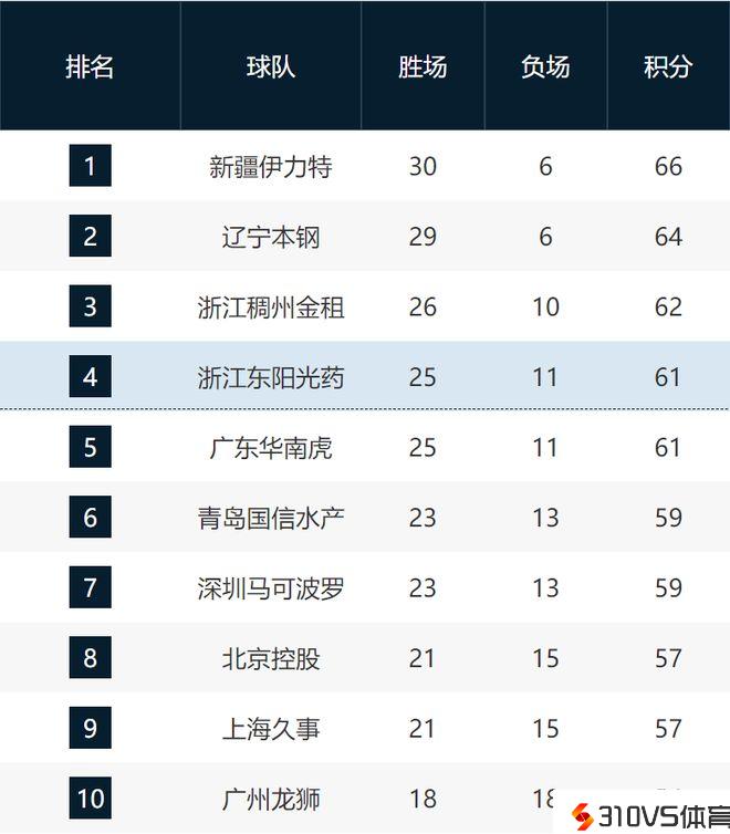 CBA惯例赛积分榜(截至1月29日)