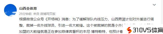 正式确定!2米08大外援加盟山西男篮,曾场均狂轰39分14板
