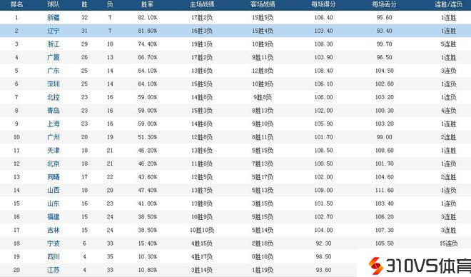 CBA最新排名:辽篮紧追领头羊新疆,广东男篮遭遇3连败,北京第12