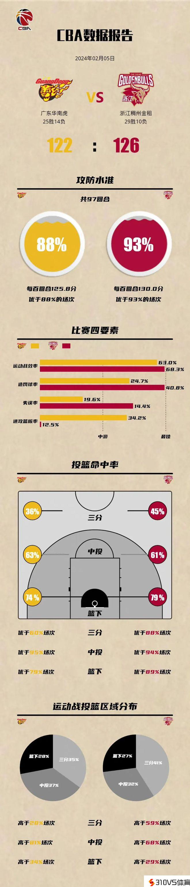 本场竞赛,广东队的外线在浙江队面前优势清楚。有周琦坐镇,在篮板球这一环,广东队以41比29遥遥抢先。周琦全场摘得16个篮板,同时,在得分方面也有26分进账,全场13投9中,可以说,周琦本场竞赛完成了自己的职责。