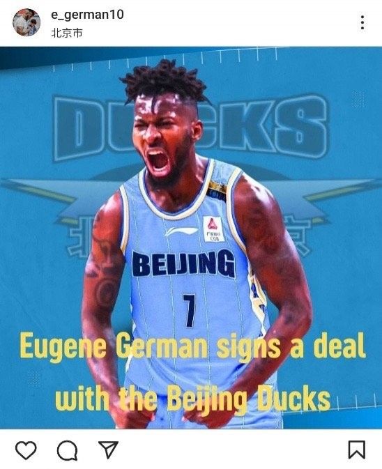 今日,前福建男篮外援尤金-杰曼更新社媒,宣布自己新赛季将代表北京男篮征战CBA。