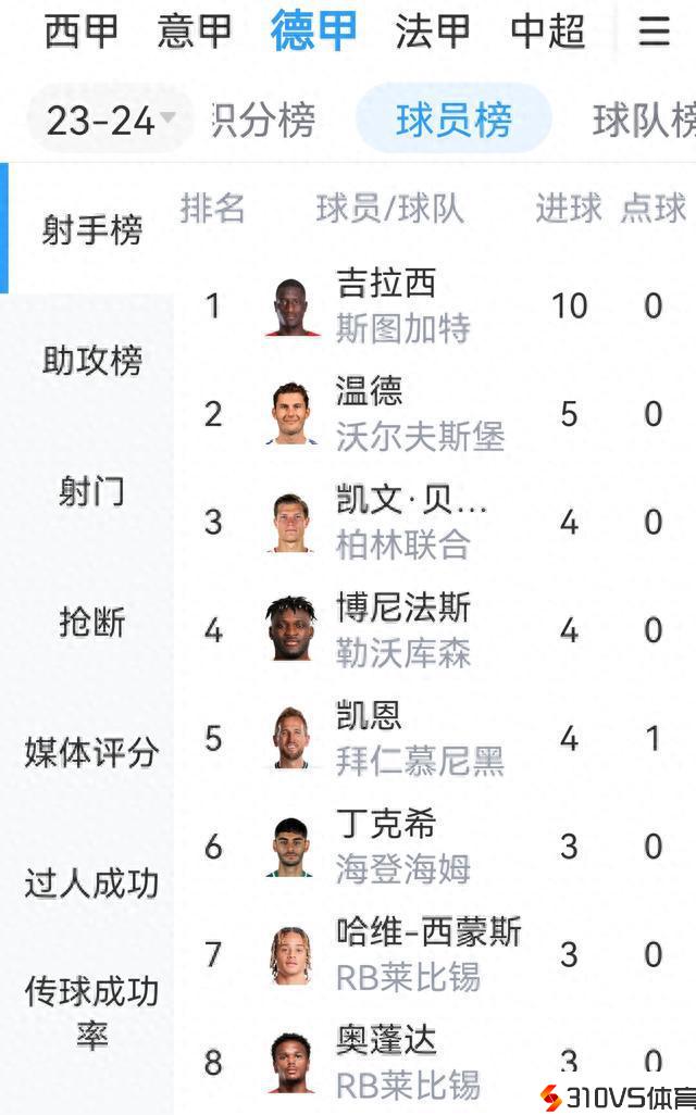 追平莱万纪录!斯图加特前锋吉拉西前5场德甲轰入10球