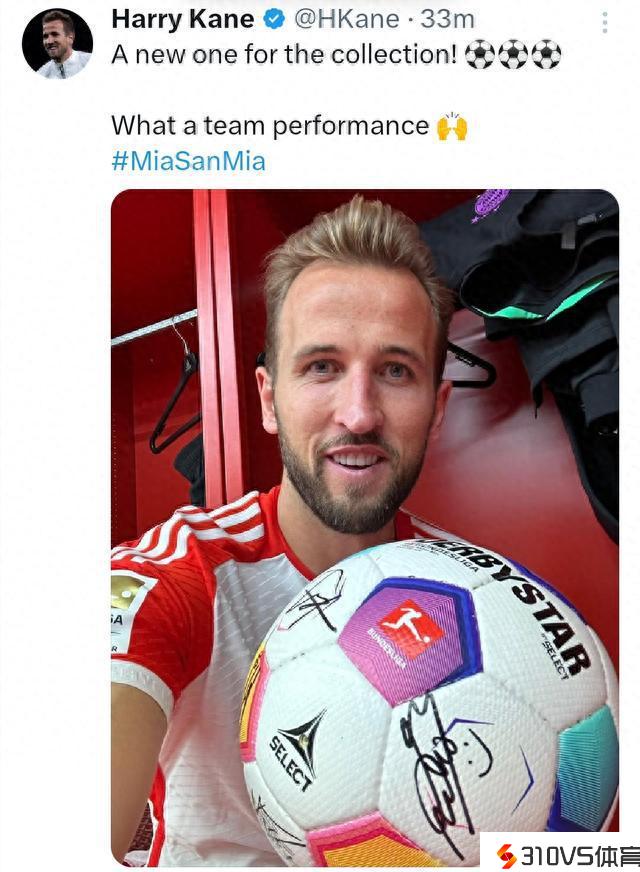 凯恩社媒晒竞赛用球:又一个新的收藏,球队的表现太棒啦!