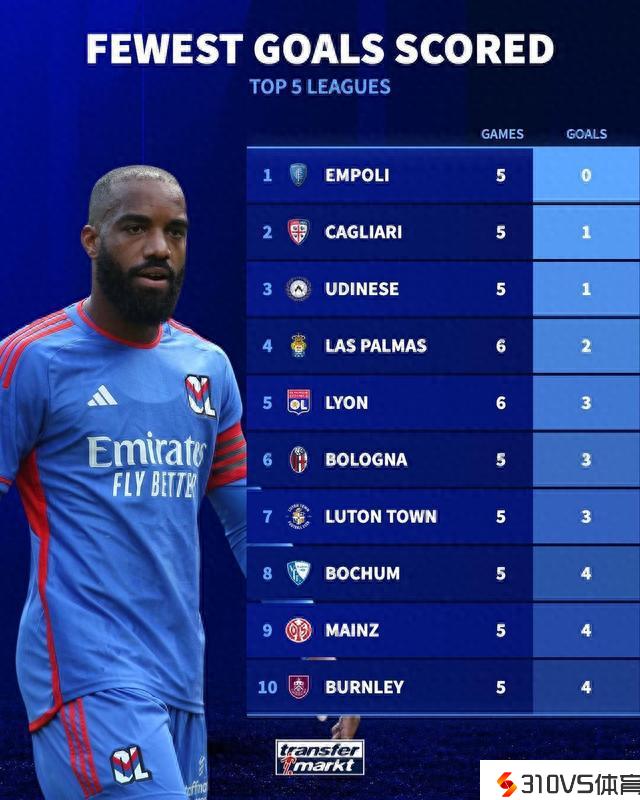 五大联赛进球最多&最少的球队:拜仁布莱顿巴萨第一,恩波利0球