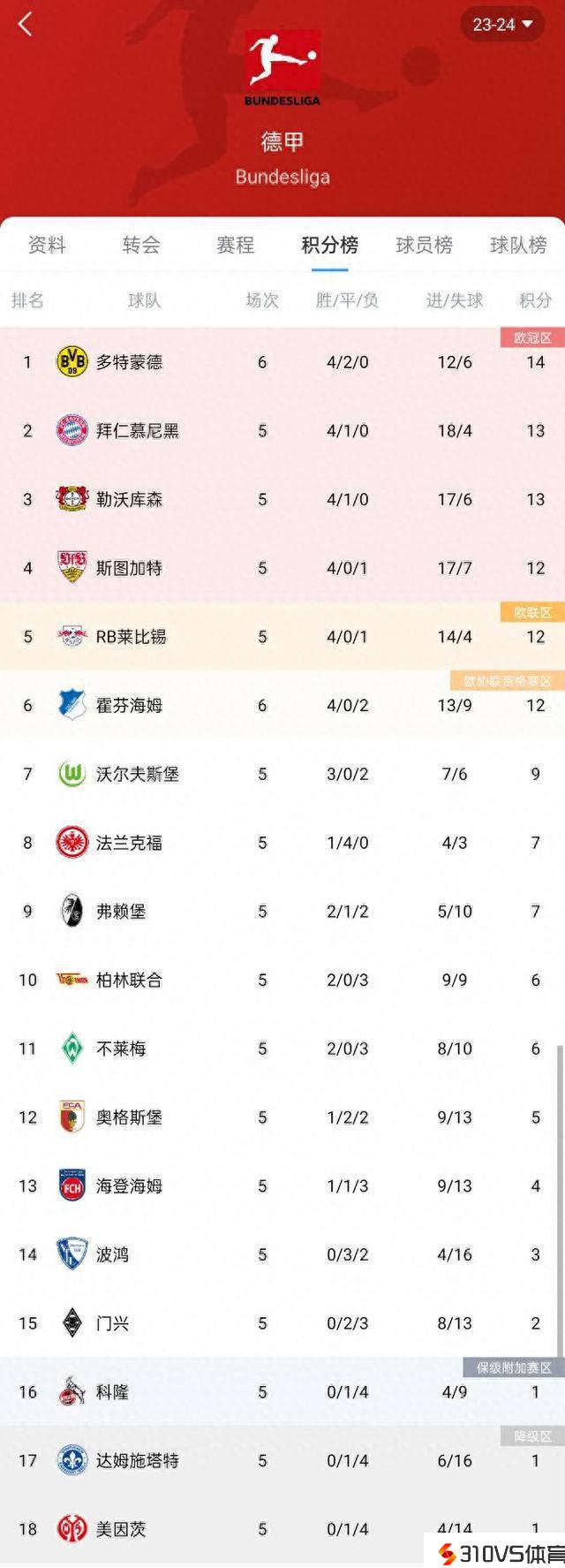 德甲积分榜:多特联赛三连胜暂登顶,拜仁落后一分本轮客战莱比锡