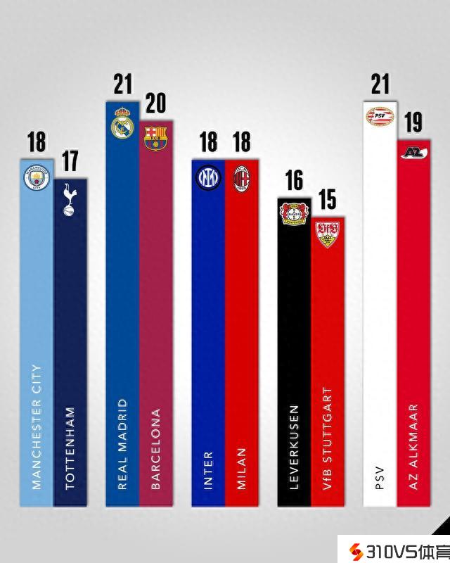 欧洲前五联赛榜一榜二分差:英西德均仅1分,意甲0分,荷甲2分