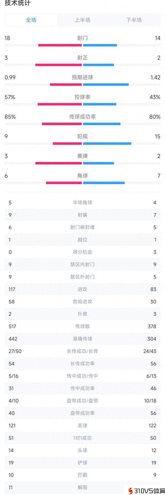多特vsAC米兰全场数据:射门18-14,射正3-2,米兰控球率43%