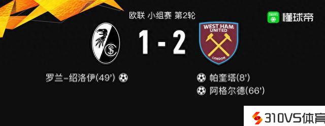 弗赖堡vs西汉姆联球员评分:帕奎塔7.9分,穆巴马5.8分