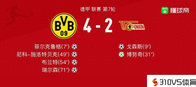 多特蒙德vs柏林结合球员评分:尼科-施洛特贝克7.8分,鲁西隆6.2分