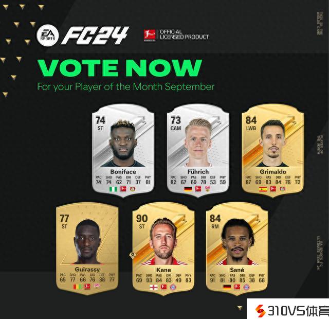 德甲9月最佳球员候选:吉拉西&博尼法斯&凯恩&萨内等人在列
