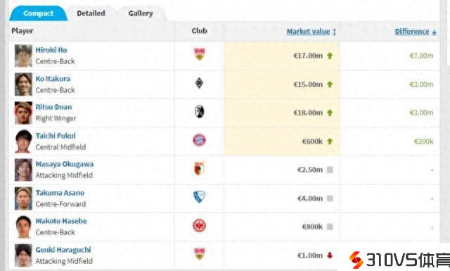 德甲日本籍8位球员身价:伊藤洋辉、堂安律、板仓晃等4人下跌