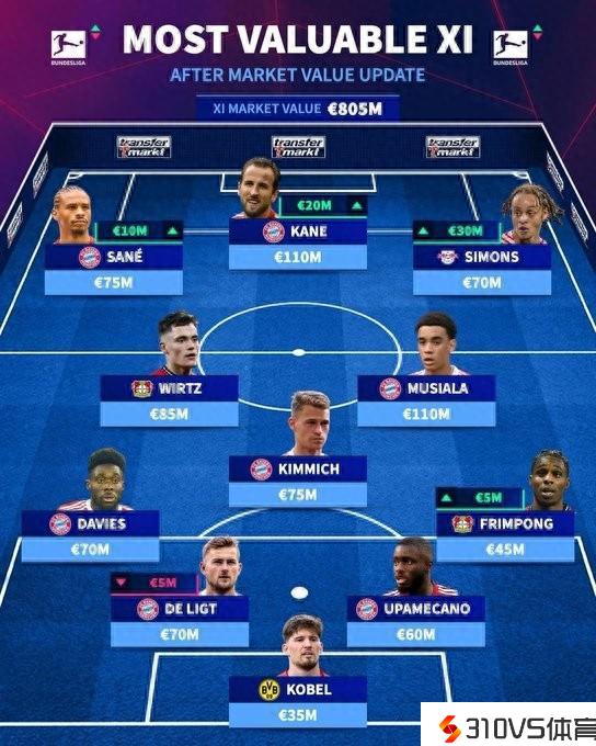 德甲德转最高身价阵容:拜仁占7席,凯恩、穆西亚拉领衔