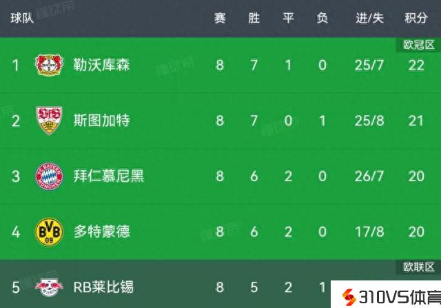 竞争剧烈,德甲前5名球队本轮竞赛坚持全胜