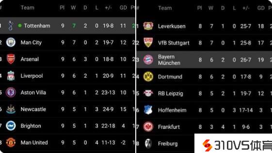 英超此前只要8队在前9轮得分23+,其中有一半球队最终能夺冠