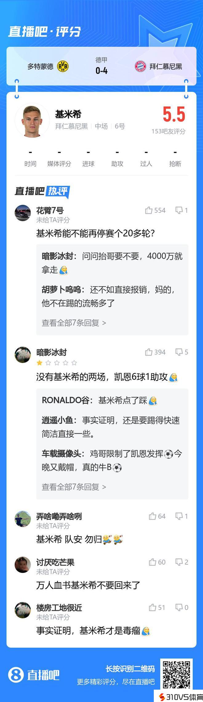 基米希停赛,拜仁大胜多特吧友锐评:能不能再停20多轮?