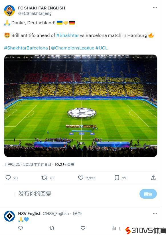 矿工晒看台TIFO:乌克兰德国!汉堡回复:
