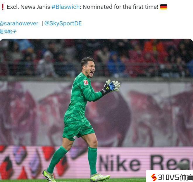 德天空记者Florian Plettenberg报道,莱比锡门将布拉斯维希初次中选德国国度队。