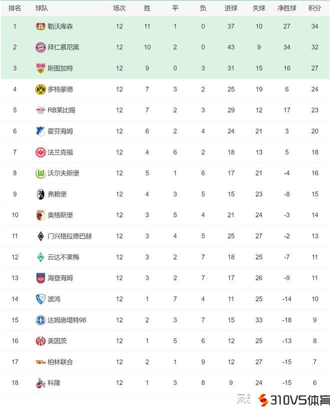 德甲 沙尔克04 云达不莱梅 斯图加特 拜仁慕尼黑 沃尔夫斯堡 勒沃库森 多特蒙德 门兴格拉德巴赫 RB莱比锡 霍芬海姆 法兰克福 柏林联合 汉诺威96 弗赖堡 奥格斯堡 美因茨 科隆 柏林赫塔 凯泽斯劳滕 卡尔斯鲁厄
