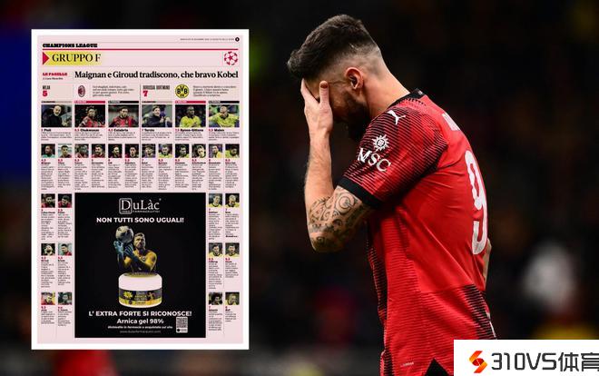 米体为米兰评分:9人不及格,皮奥利5分,吉鲁等3人4.5分最差