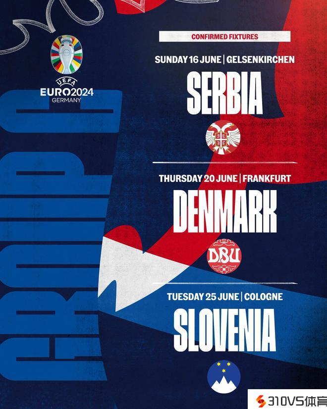 英格兰小组赛赛程:先后对阵塞尔维亚、丹麦、斯洛文尼亚
