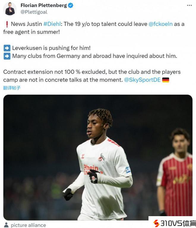 记者:勒沃库森等队有意科隆19岁边锋迪尔,球员合同明夏到期