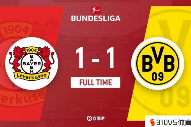 全场竞赛完毕,多特1-1勒沃库森。