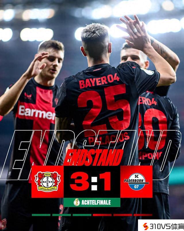 德国杯-勒沃库森3-1帕德博恩进8强 维尔茨伤退药厂各赛事21场不败