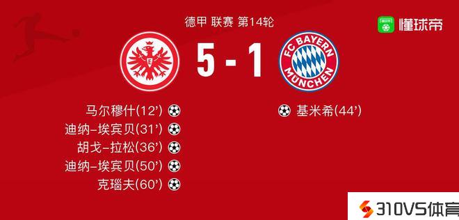 北京时间12月09日法兰克福vs拜仁慕尼黑,迪纳-埃宾贝失掉全场最高的8.9分,恩甘卡姆失掉全场最低的5.6分