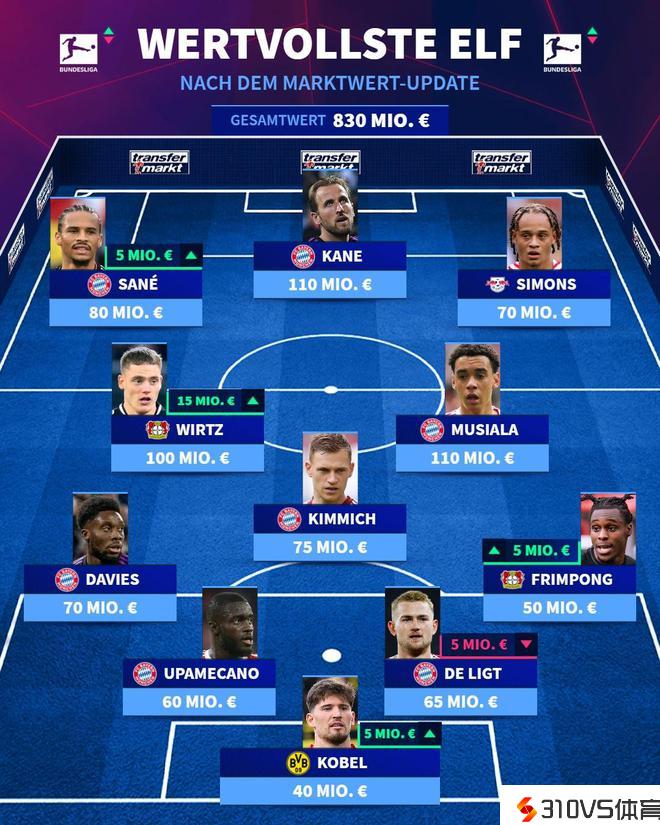 德转列德甲最贵阵容:凯恩领衔拜仁7人中选,3人身价过亿欧