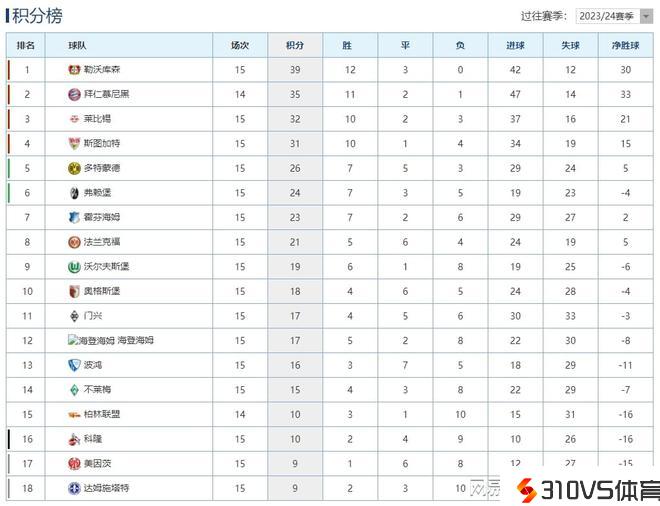 德甲最新积分榜:凯恩2球拜仁大胜劲敌,勒沃库森赢球4分领跑!