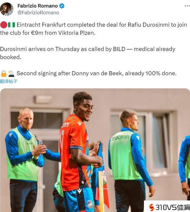 罗马诺:法兰克福签下比尔森成功前锋杜罗辛米,转会费900万欧