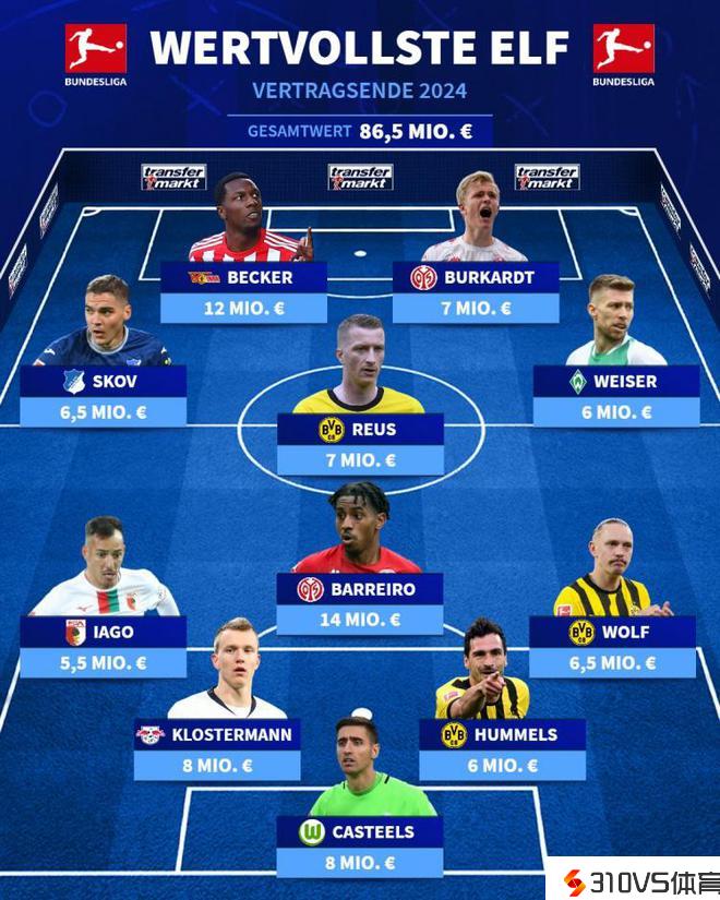 德甲将成为自在球员最贵阵:罗伊斯、胡梅尔斯、沃尔夫在列