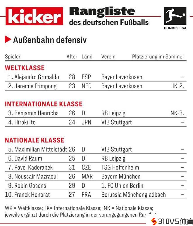 踢球者德甲边卫评级:格里马尔多、弗林蓬世界级
