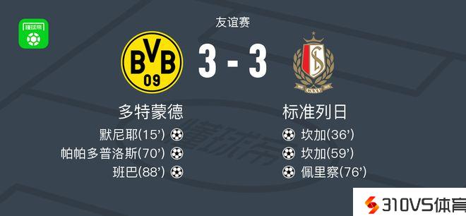 多特蒙德vs规范列日全场数据:射门数14-12,射正数8-7