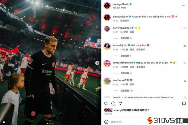 客场击败莱比锡,范德贝克社媒:很快乐完成法兰克福首秀并取胜