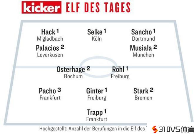 踢球者德甲第17轮最佳:桑乔中选,穆西亚拉和帕拉西奥斯在列