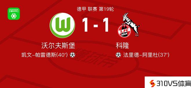 北京时间1月27日德甲 联赛 第19轮,沃尔夫斯堡主场对阵科隆。沃尔夫斯堡凯文-帕雷德斯破门。科隆法里德-阿里杜破门。最终比分1-1。
