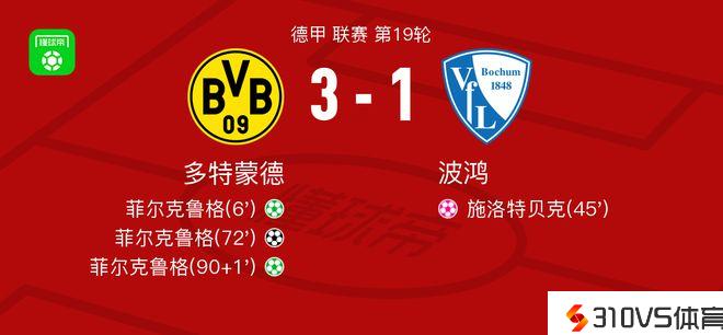 多特蒙德vs波鸿球员评分:菲尔克鲁格9.7分,甘博亚5.4分