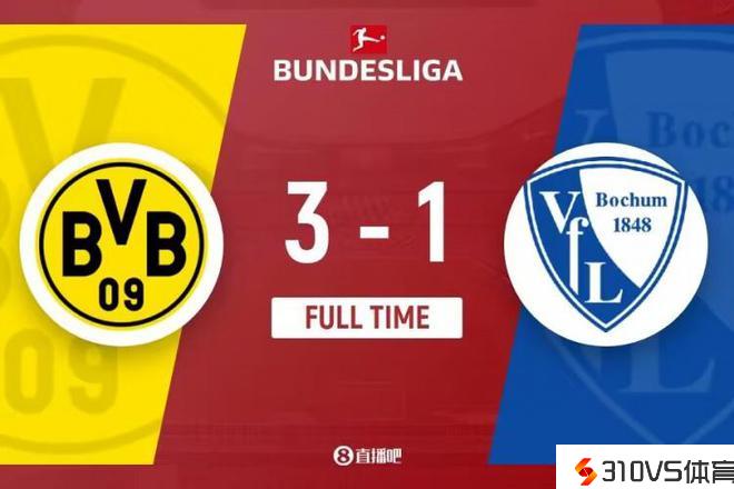 全场竞赛完毕,多特蒙德3-1波鸿。