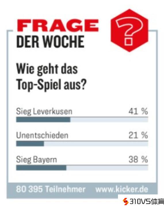 踢球者调查德甲榜首大战结果:看好药厂获胜的球迷更多