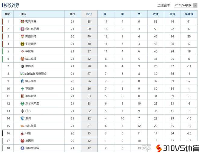 德甲最新积分榜:勒沃库森大胜拜仁5分领跑,莱比锡战颠簸居第5!