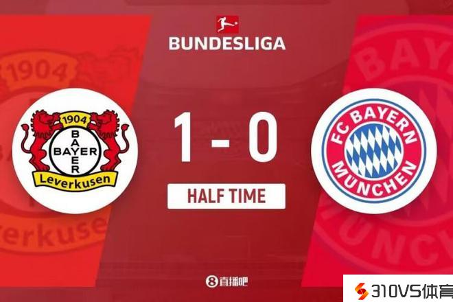上半场竞赛完毕,勒沃库森1-0拜仁慕尼黑。