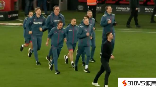 凝聚力,阿隆索带着助教和队医团队一同庆贺成功