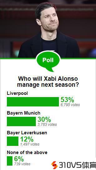 邮报投票调查:53%参与者以为阿隆索下赛季会执教利物浦